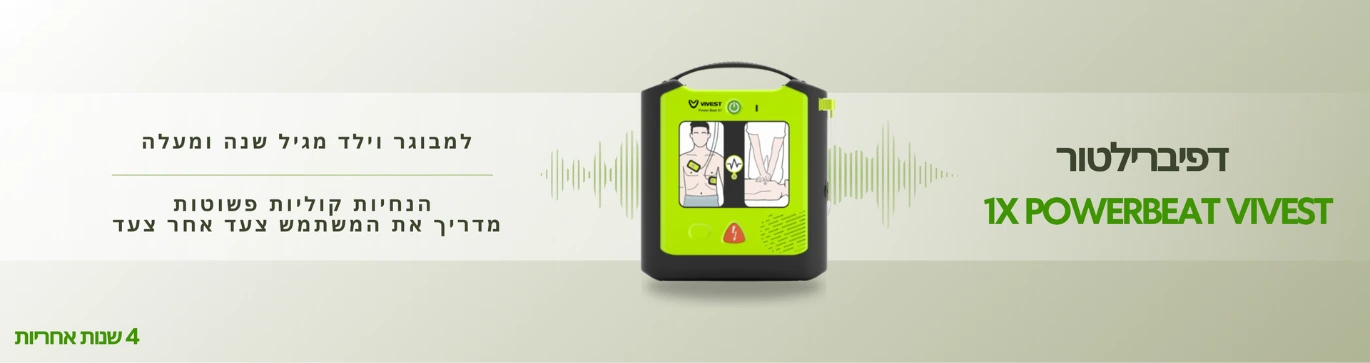 דפיברילטור PowerBeat ViVest 1X. AED אוטומטי. למבוגר וילד. דובר עברית. 4 שנות אחריות. ס.מדיק יבוא